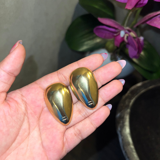 Gold Oval Stud Earrings || DV55